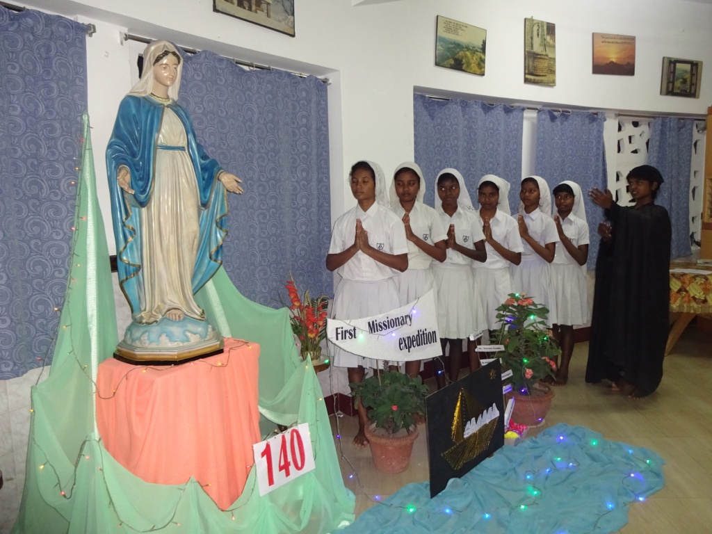 Some schools celebrated missionary week. Where students expressed their talents and love for our six missionaries through prayer dance, skit, drama and songs. The Sisters took the initiative to prepare the students by narrating the life and mission of these first missionaries. To mark this day an exhibition of the drawing and sketches of our first missionary sisters were displayed. Everyone enjoyed and were surprised in seeing the future modern FMAs on the stage.